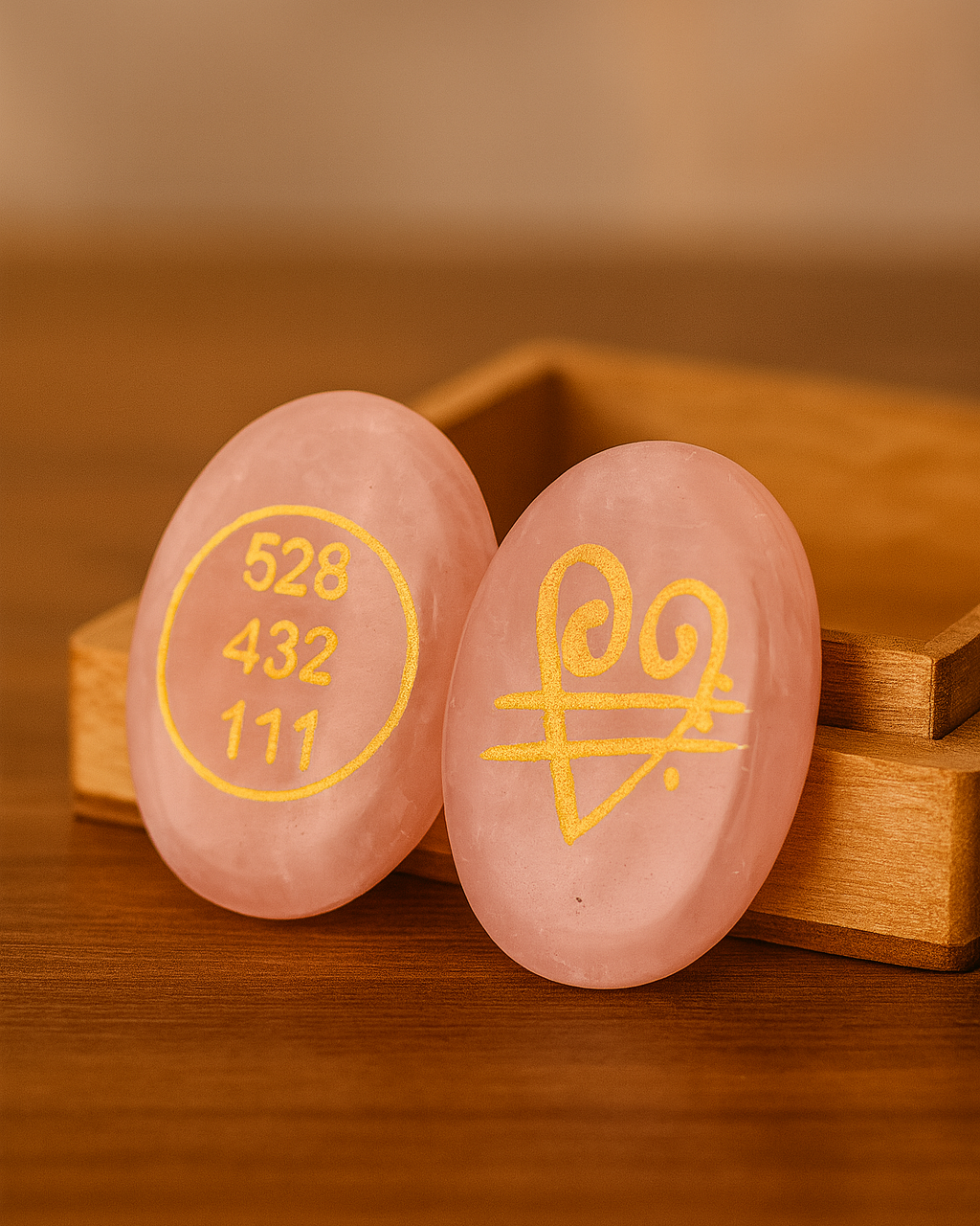 Zibu coin made of Rose Quartz, stone of love and emotional healing.